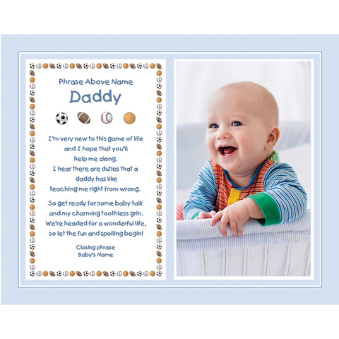 Cute personalized gift for a new Dad for Christmas or his birthday. It will be proudly displayed for years to come as the first gift from his baby. Poem is written in a "child-like typeface." Personalize with the child's name and an adorable photo. This personalized print can be framed in a standard 8x10 inch picture frame after delivery.