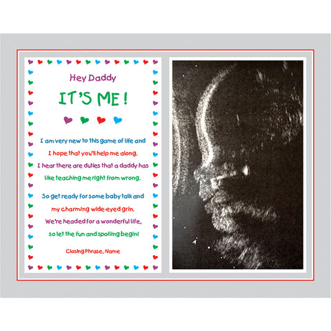 Cute keepsake gift for a new Dad. The soon-to-be Daddy will love getting this cute gift from his baby - poem is written in a kid's typeface. Can be personalized with the baby's name (if known) or just leave a closing phrase like XOXO. Makes a wonderful birthday or Christmas gift for the daddy-to-be. This personalized print can be framed in a standard 8x10 inch picture frame after delivery.