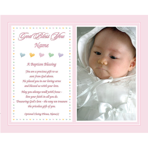 Looking for a Baptism/Christening gift for a sweet little baby girl to commemorate this all important day? This heartfelt poem with photo of the baby is perfect! The poem is personalized with her name. A special Baptism/Christening keepsake gift for a daughter, goddaughter, granddaughter, etc. and one that her parents will also love. This personalized print can be framed in a standard 8x10 inch picture frame after delivery.